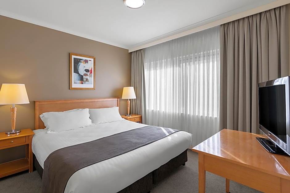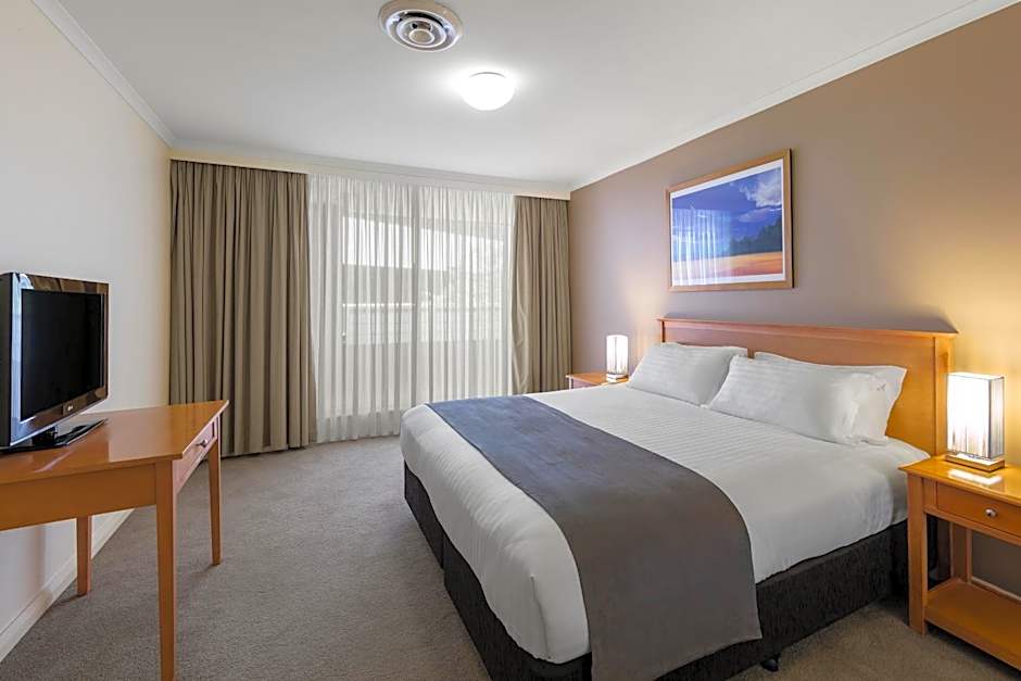 The One Bedroom Apartment's are fully self-contained and feature a separate living room, walk through bathroom with a shower over bath and views overlooking Canberra City. There is a double sofa bed (fees are applicable) in the lounge area. Also included is a fully-equipped with a full size fridge and freezer, stove top, oven, microwave and dishwasher and there is a dining table so your meals can be prepared and enjoyed in the apartment. The apartment also features laundry facilities , WiFi access and an LCD TV .